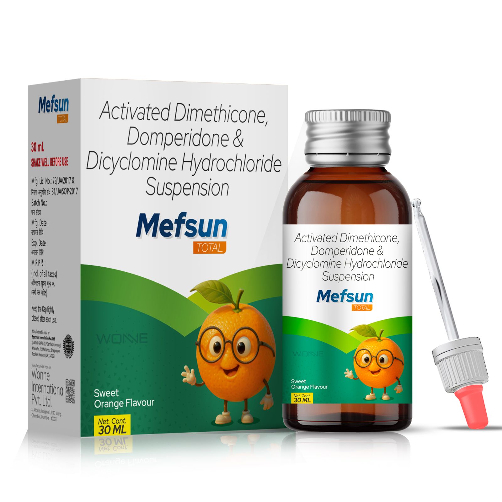 Activated Dimethicone, Domperidone & Dicyclomine Hydrochloride Suspension – Mefsun Total Suspension