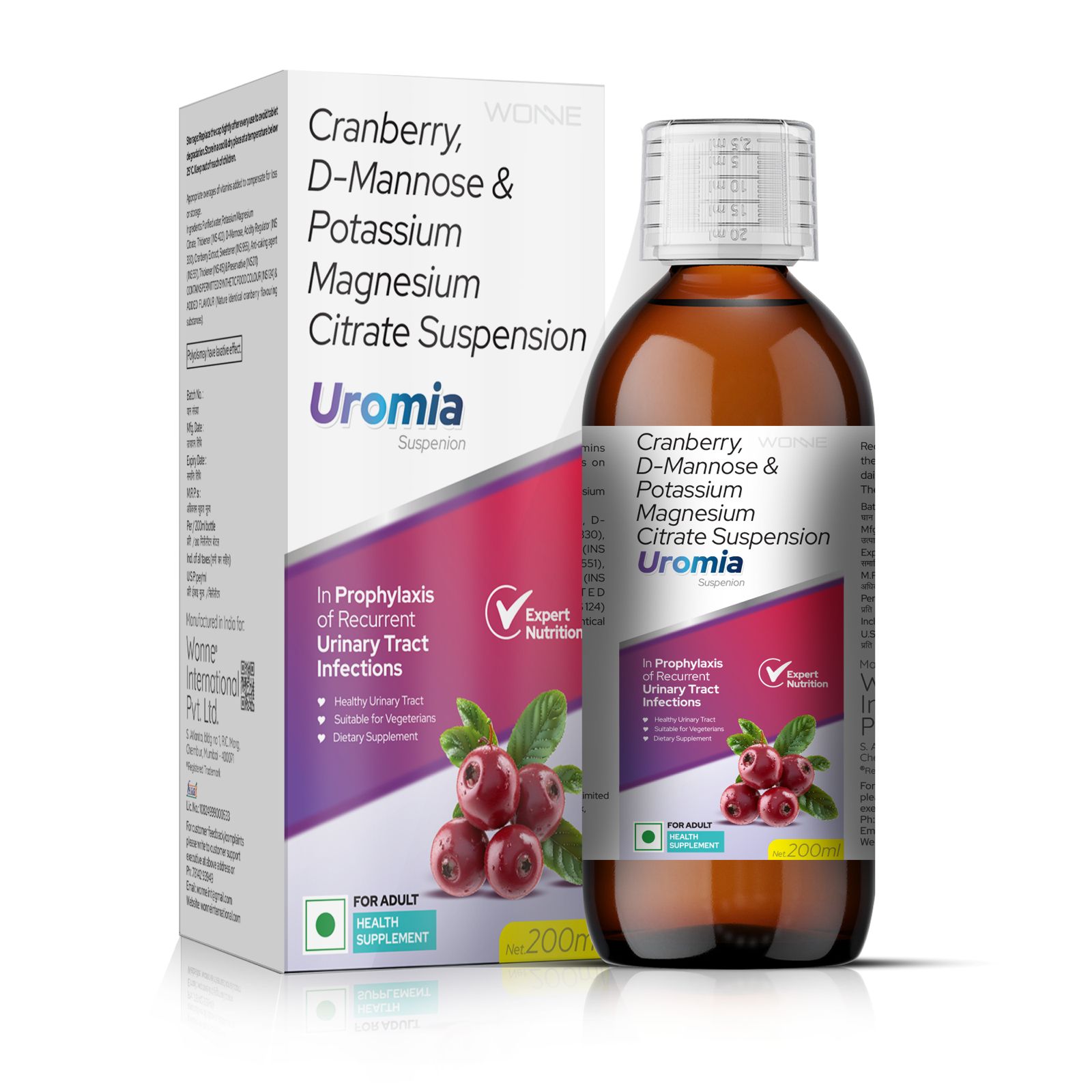 Cranberry Extract 200 mg+D-mannose 300 mg+ Potassium Magnesium Citrate 978 mg (sugar free) Cranbery Flavour