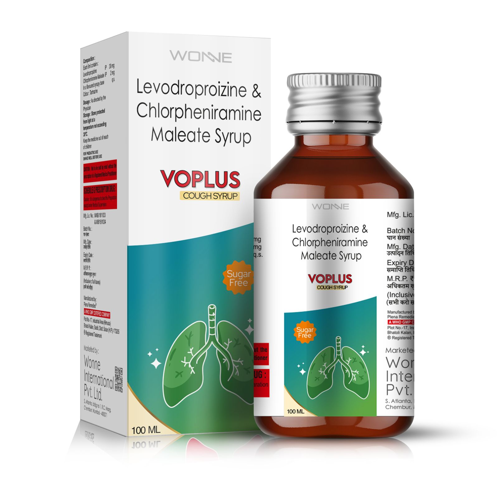 Each ml contains:- Levosalbutamol 0.25mg + Ambroxol Hydrochloride 7.5mg + Guaiphenesin 12.5mg