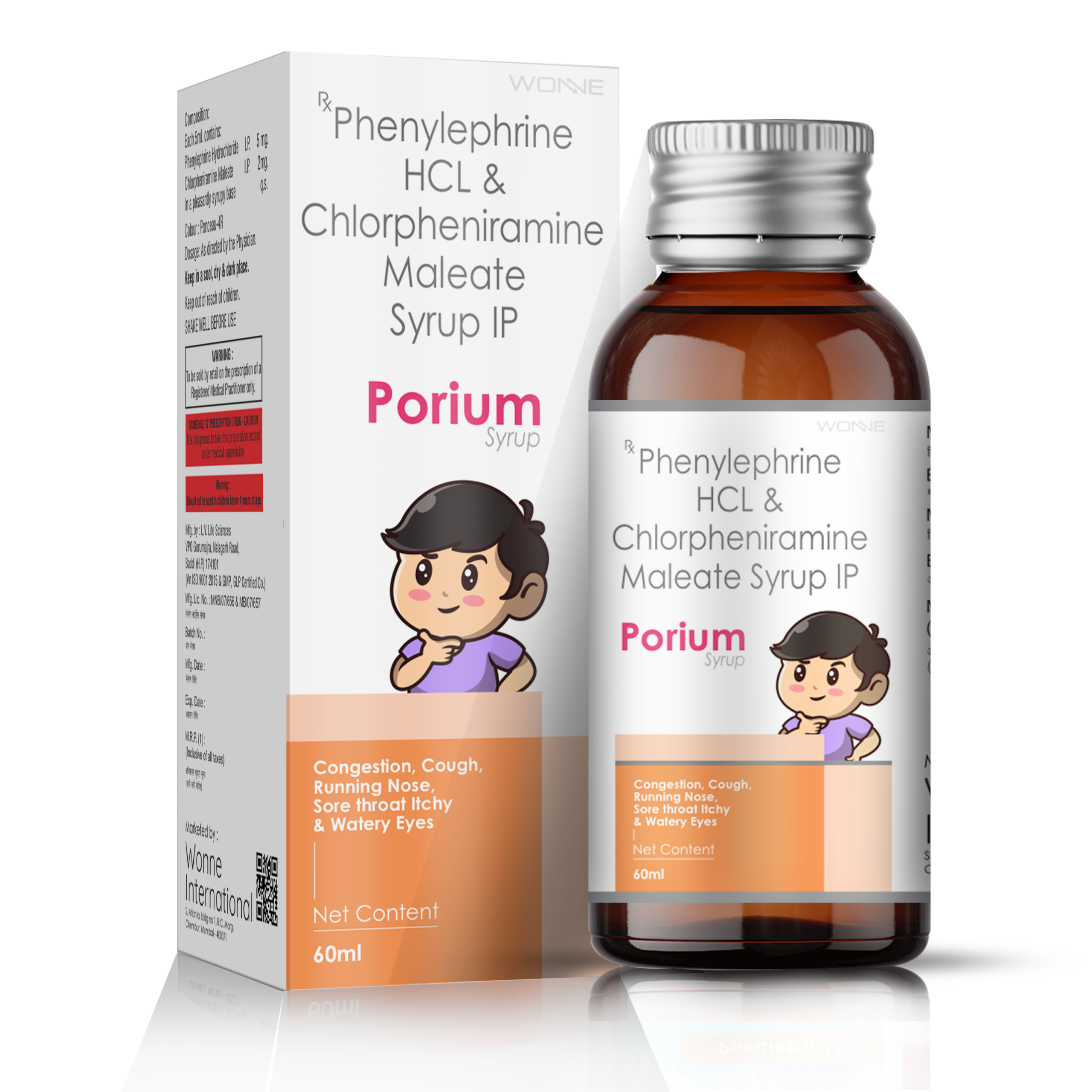 PORIUM Syrup – The combination of Phenylephrine Hydrochloride & Chlorpheniramine Maleate Syrup provides effective relief from nasal congestion and allergic symptoms associated with cold and flu.